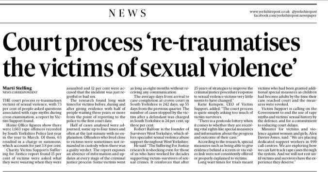 He said: “The Suffering for Justice research is shocking even for those of us who have worked for decades supporting victim–survivors of sexual crimes. It reinforces that after 25 years of strategies to improve the criminal justice procedure response to sexual violence victims very little seems to have changed.”