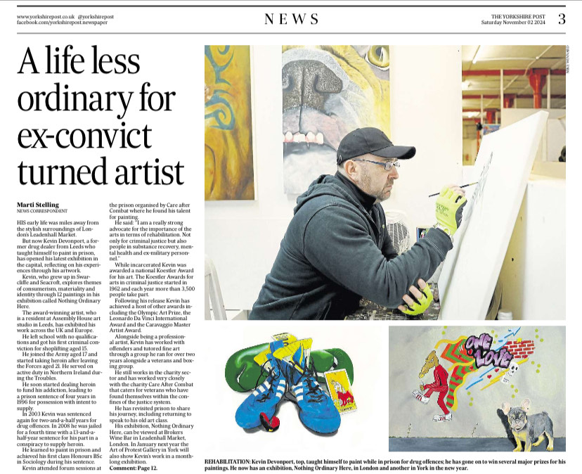 He works for a charity called Changing Lives and offers free art classes in the community as well as working very closely with Care After Combat which supports veterans in the justice system and helped him discover his artistic talent while he was incarcerated.